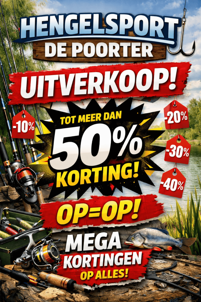 In afwachting van verdere plannen starten we vanaf nu met een totale uitverkoop van onze volledige voorraad. Dit is een kans om uw hengelsportmateriaal aan te vullen of nieuwe producten aan te schaffen tegen sterk verminderde prijzen.